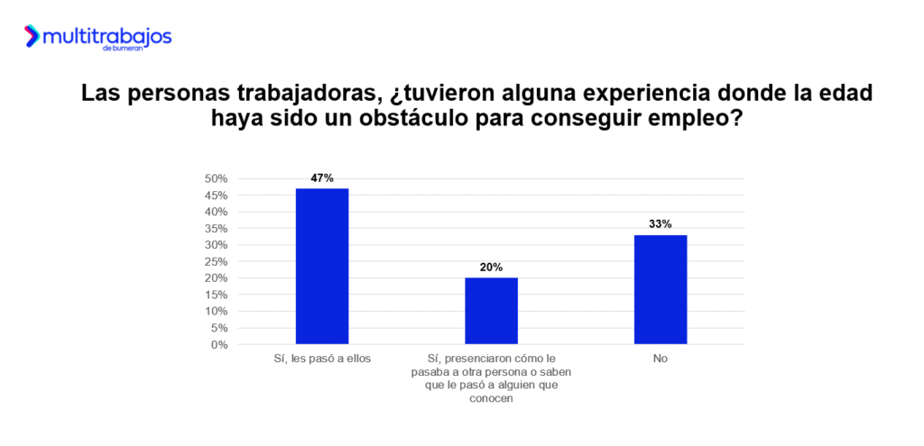 Según el estudio ¿Es la edad un factor determinante? de Multitrabajos, el portal de empleo líder en Latinoamérica, el 67% de las personas trabajadoras fue discriminada por su edad o presenció una situación de este estilo al buscar empleo. Un 33% afirma no haberlo experimentado nunca.