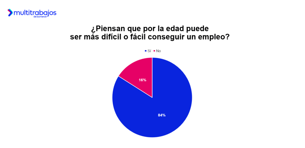 El 84% de los talentos considera que la búsqueda de empleo puede ser más o menos desafiante dependiendo de la edad. Esta percepción se repite en el resto de países de la región: el 89% en Argentina y Chile; el 81% en Perú; y el 77% en Panamá.