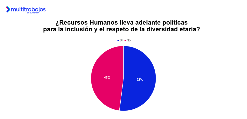 El 52% de las personas trabajadoras en Ecuador indica que el área de Recursos Humanos de su organización sí implementa políticas para promover la inclusión y el respeto por la diversidad etaria.