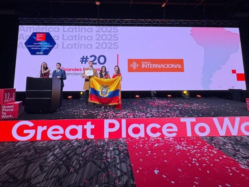 Banco Internacional alcanzó el puesto 20 en el ranking de Los Mejores Lugares para Trabajar™ en América Latina 2025 en la categoría grandes empresas, avalado por Great Place To Work® (GPTW). En esta edición, 200 organizaciones de distintos países y sectores fueron distinguidas por construir culturas laborales sólidas, centradas en el bienestar, la equidad y la mejora continua de sus colaboradores.