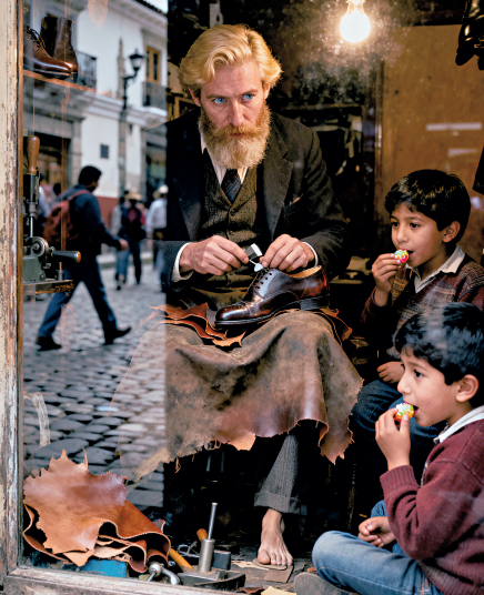 Lo más asombroso ocurría los domingos. A las ocho en punto, el zapatero cerraba su taller y salía completamente transformado. Llevaba una hermosa chaqueta, una camisa blanca con botones de perla y gemelos de oro que parecían brillar con el sol, y un bastón con mango de marfil y plata. Empero, en medio de toda esta elegancia, sus pies seguían descubiertos, un contraste tan llamativo que muchos ciudadanos no podían evitar mirarlo.
