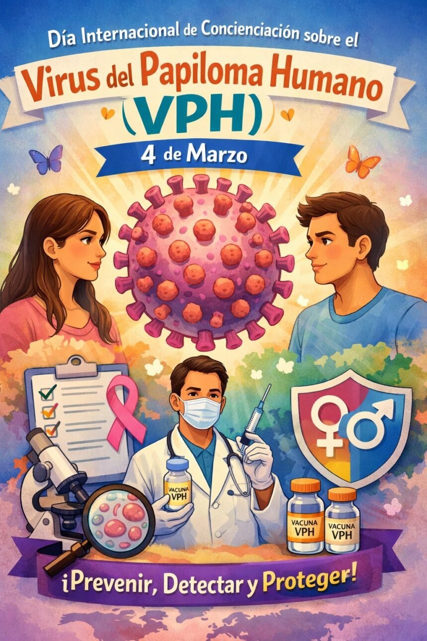 Cada 4 de marzo se celebra el Día Internacional de Concienciación sobre el Virus del Papiloma Humano (VPH). Este día tiene el objetivo de crear conciencia sobre el virus y las medidas que se pueden tomar para prevenir los diferentes tipos de cáncer que ocasiona.