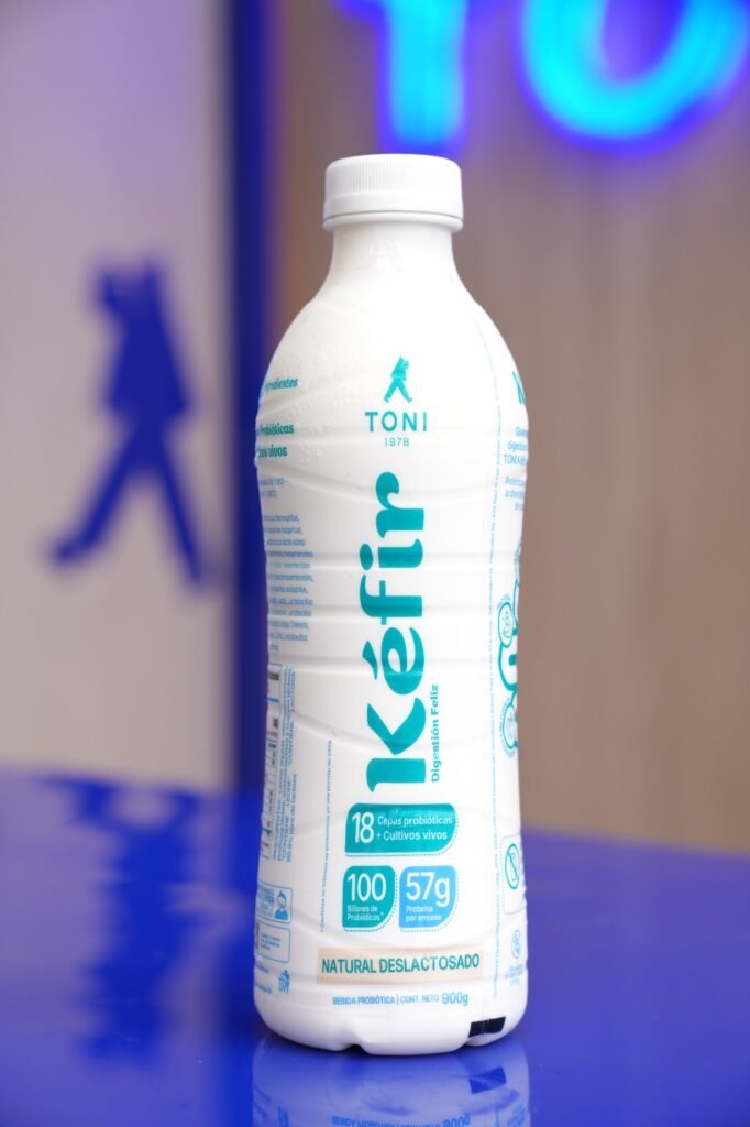 El kéfir es una bebida elaborada a partir de leche fermentada y cultivos vivos. En la nueva propuesta de Tonicorp, se trata de una bebida probiótica deslactosada que contiene 18 cepas probióticas y cultivos vivos, con 100 billones de probióticos por porción (240 g). Además, aporta 15 gramos de proteína por cada vaso de consumo, integrando funcionalidad y nutrición en un solo producto.